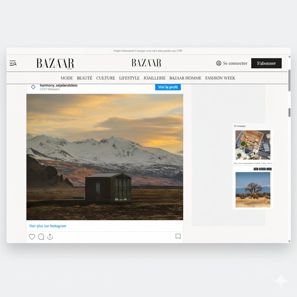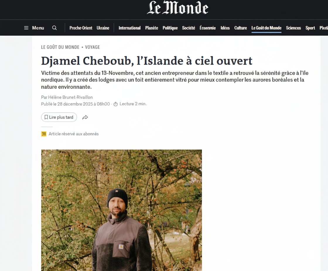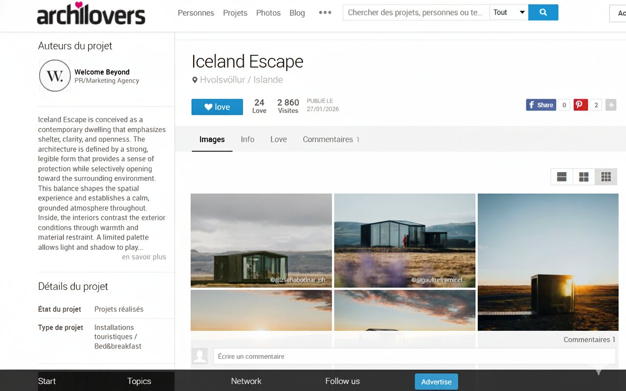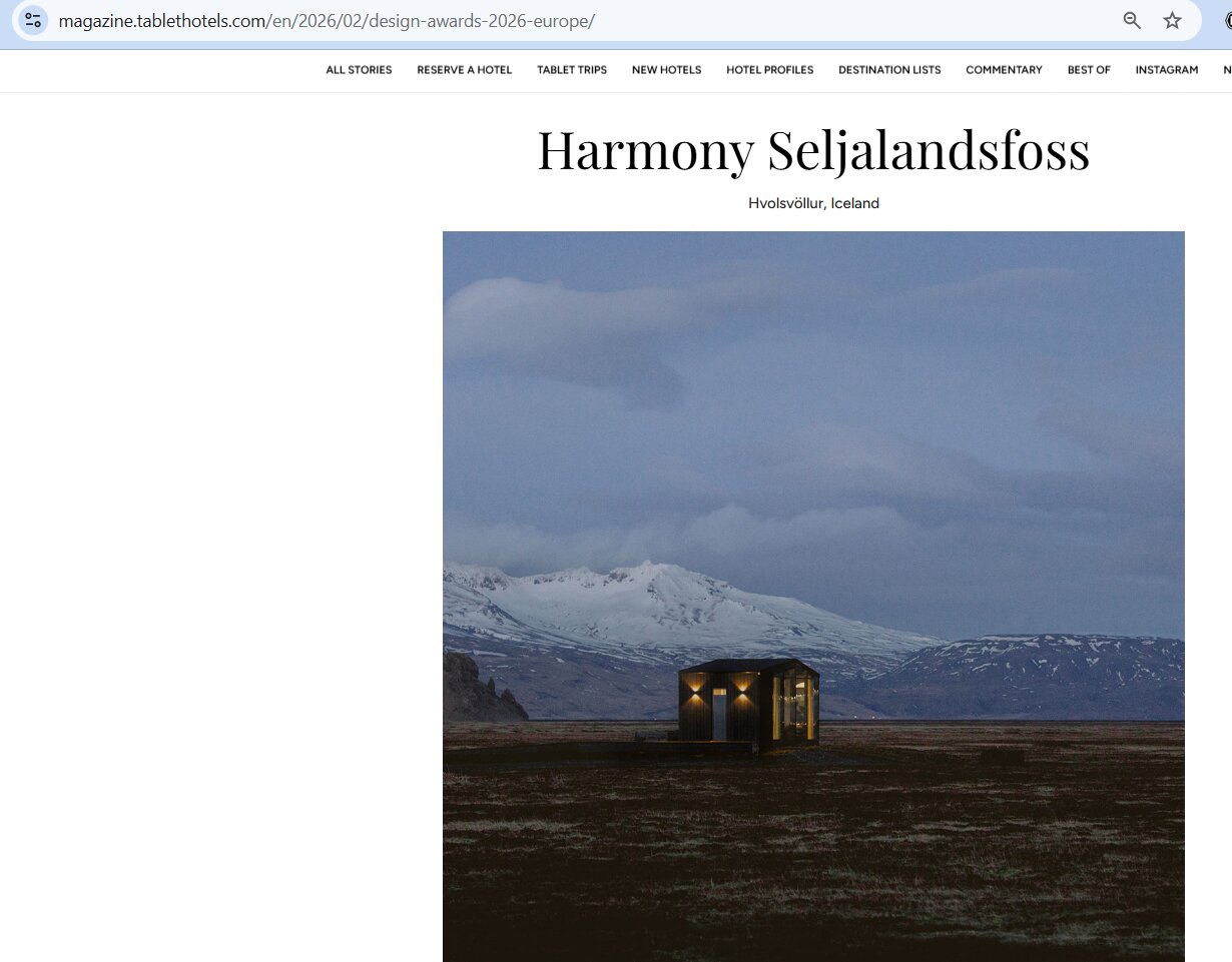 Press & MEDIA Harper’s Bazaar Luxury Iceland retreat featured in Harper’s Bazaar. Financial Times Architecture and landscape merge in Iceland. Le Monde Deux lodges ouverts sur la nature islandaise. Archilovers Minimalist architecture immersed in raw Iceland. New York Times A secluded Icelandic escape where design meets nature. Tablet Hotels Award-winning Iceland retreat experience.